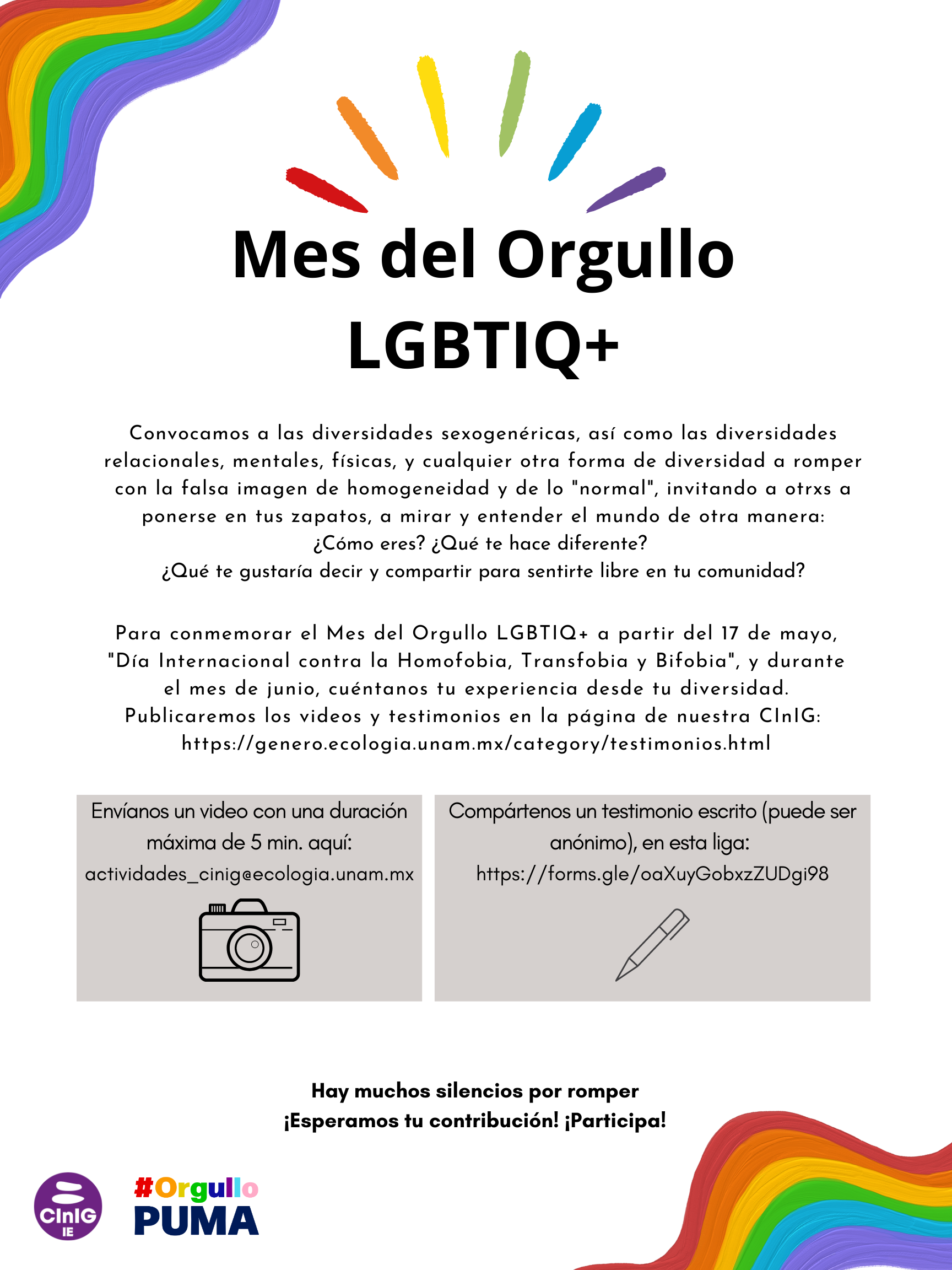 Compártenos tu testimonio escrito. Puede ser anónimo, envíalo en esta liga: https://forms.gle/oaXuyGobxzZUDgi98
