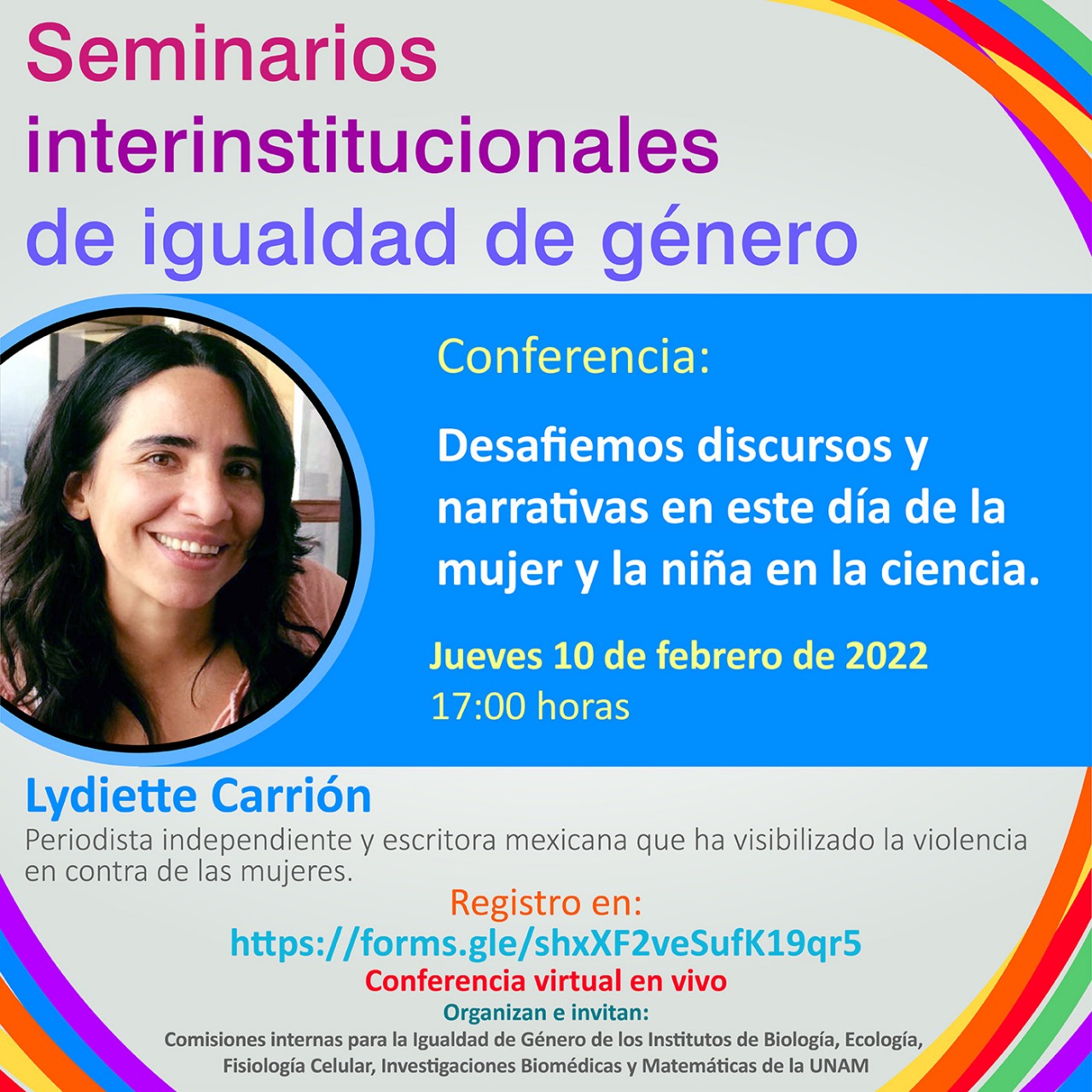 Les invitamos al seminario que se llevará a cabo hoy 10 de febrero a las 17:00 titulado Desafiemos discursos y narrativas en este día de la mujer y la niña en la ciencia.