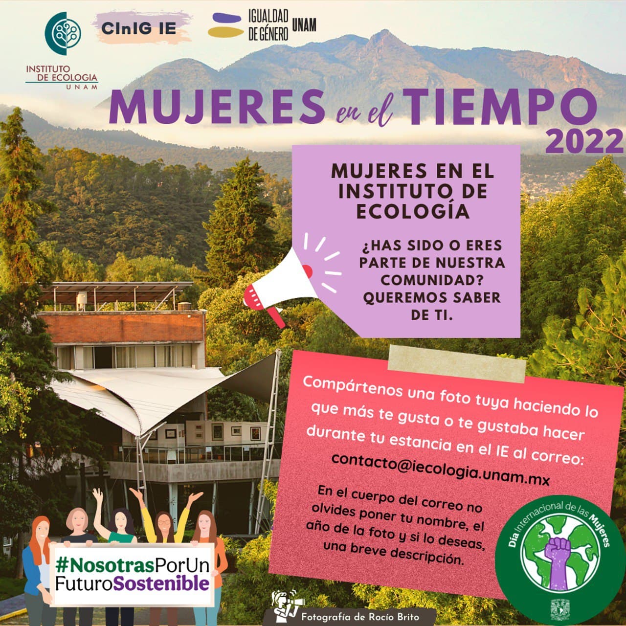 Con motivo de las actividades del #8M, hacemos una cordial invitación a formar parte del álbum Mujeres en el tiempo. ¡Formar parte es muy fácil! Envía tu foto, tu nombre completo y una breve descripción. La recepción de fotos será durante todo el mes de marzo a través del correo contacto@iecologia.unam.mx